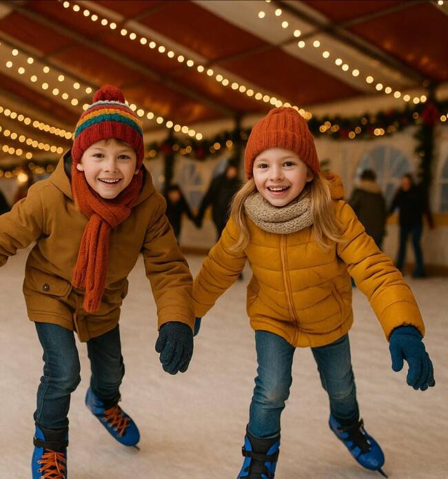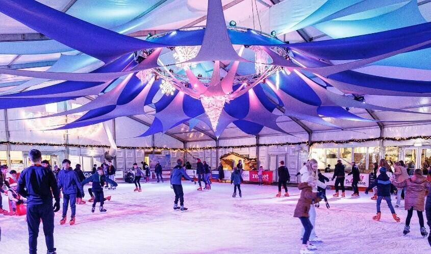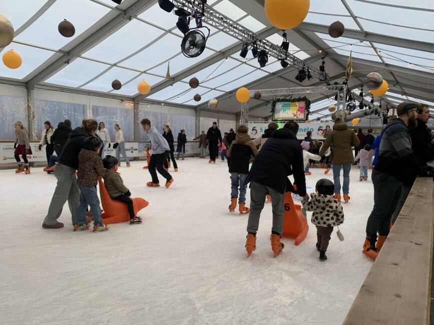 Tot en met 17 januari kun je in Ede schaatsen op een overdekte kunstijsbaan op het Raadhuisplein. Je glijdt over 600 m² ijs terwijl winterse muziek en sfeervolle verlichting zorgen voor een gezellige ambiance in het centrum van de stad. Na een paar rondjes warm je op bij Café De Scheve Schaats met warme chocolademelk of glühwein, waardoor schaatsen hier ook een heerlijk moment van samenzijn wordt.